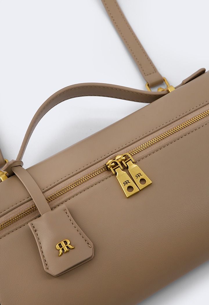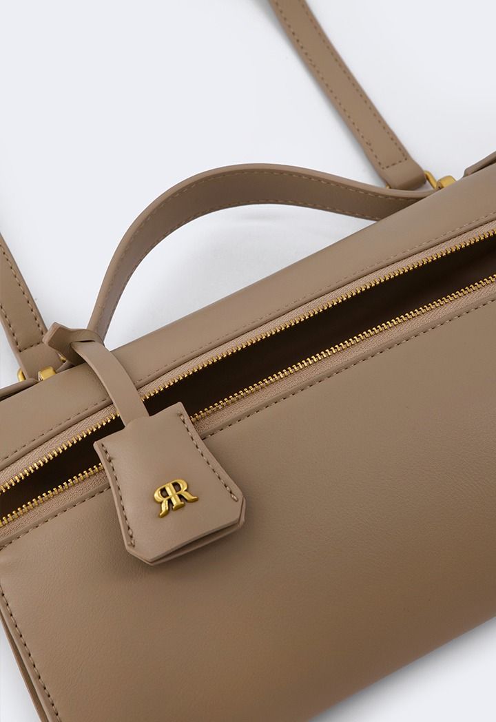 Design : Solid, PU Leather, Top Handle, Detachable Strap, Metallic Details