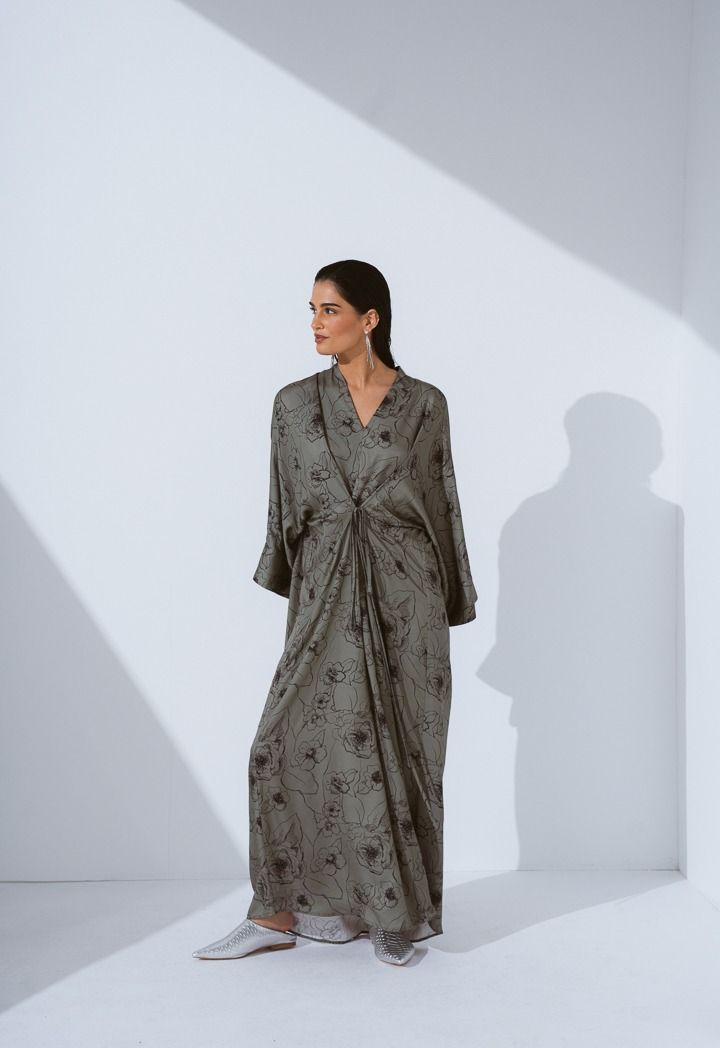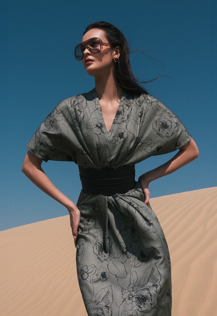 V-Neck Floral Printed Dress |