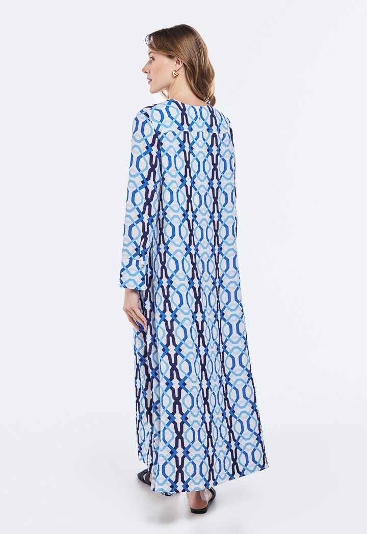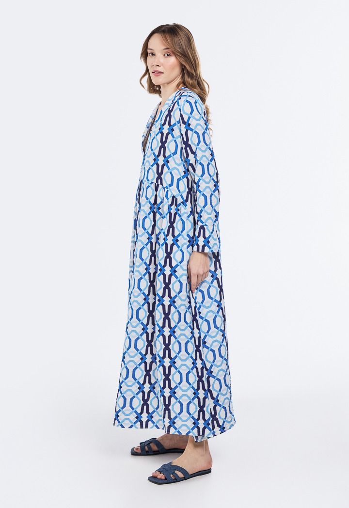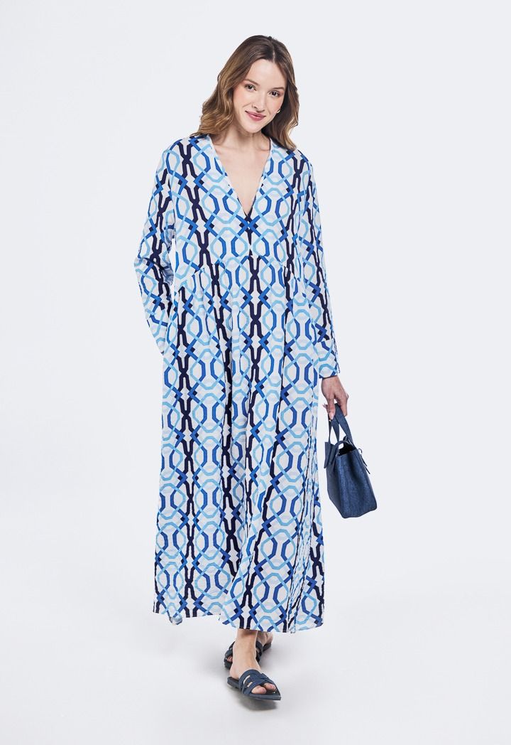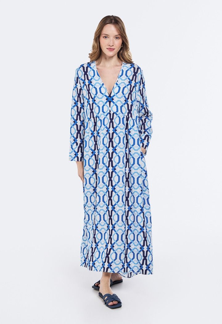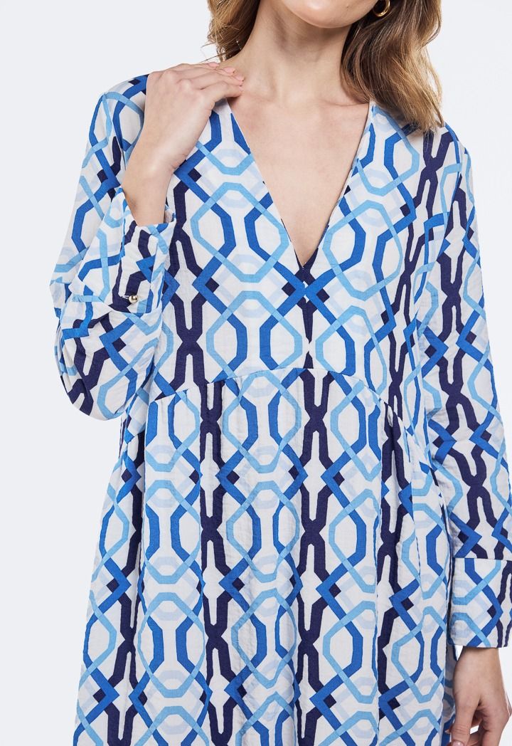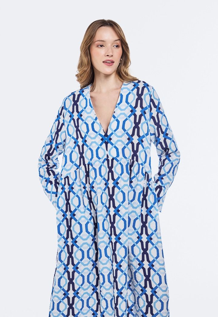 An innovative style dress with unique prints and a V-shaped collar, giving you a bold, modern look that fits every moment of your day.