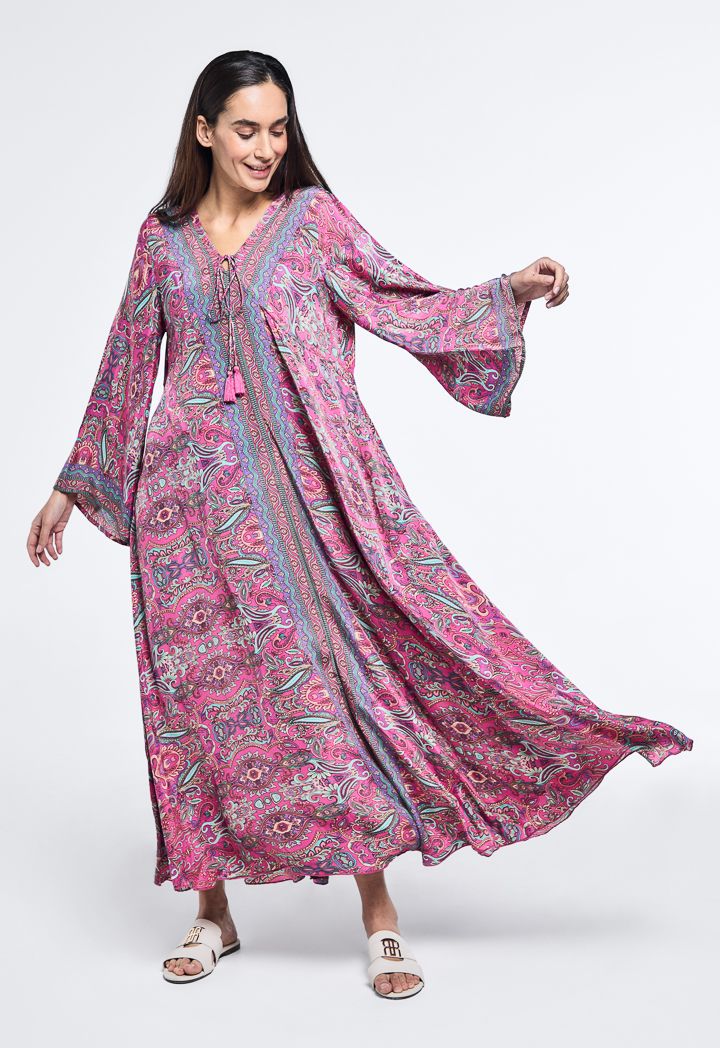 V-Neck Printed Flared Dress |