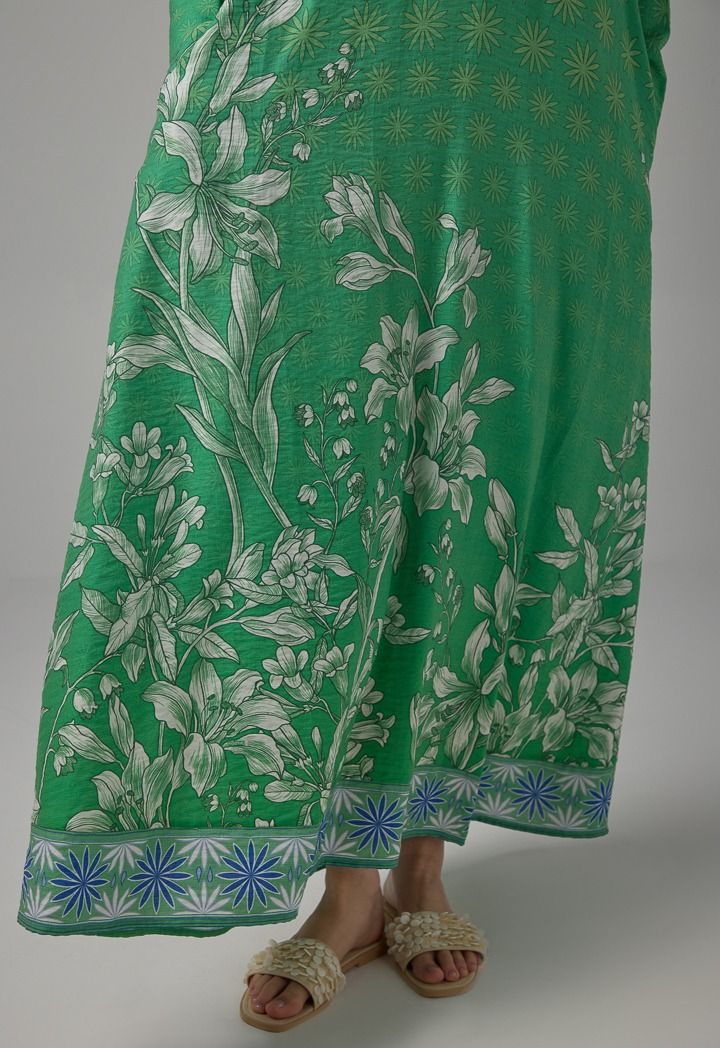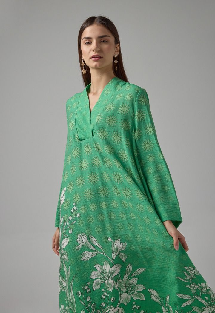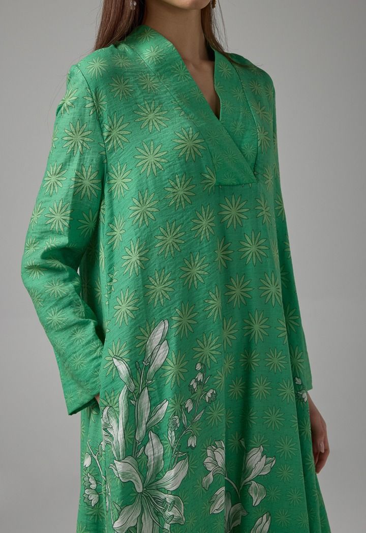 V-Neck Printed Flared Dress |