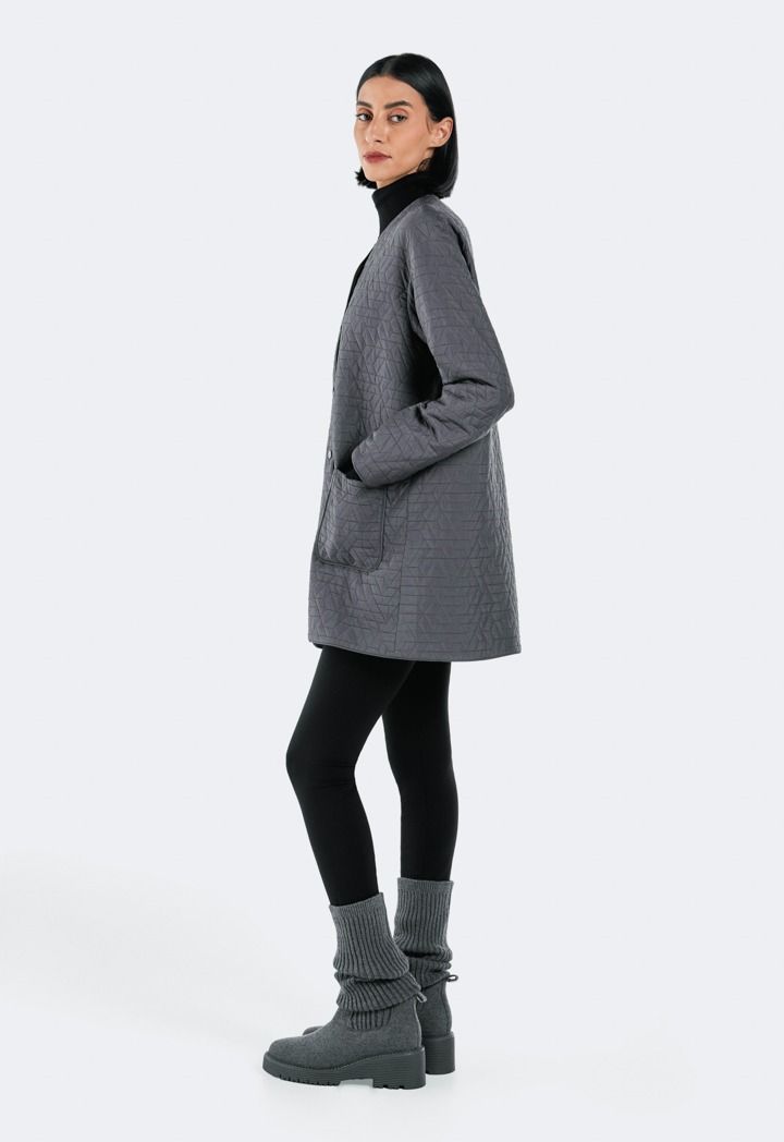 Design : Solid, Front Pockets, Quilted, Attached Lining