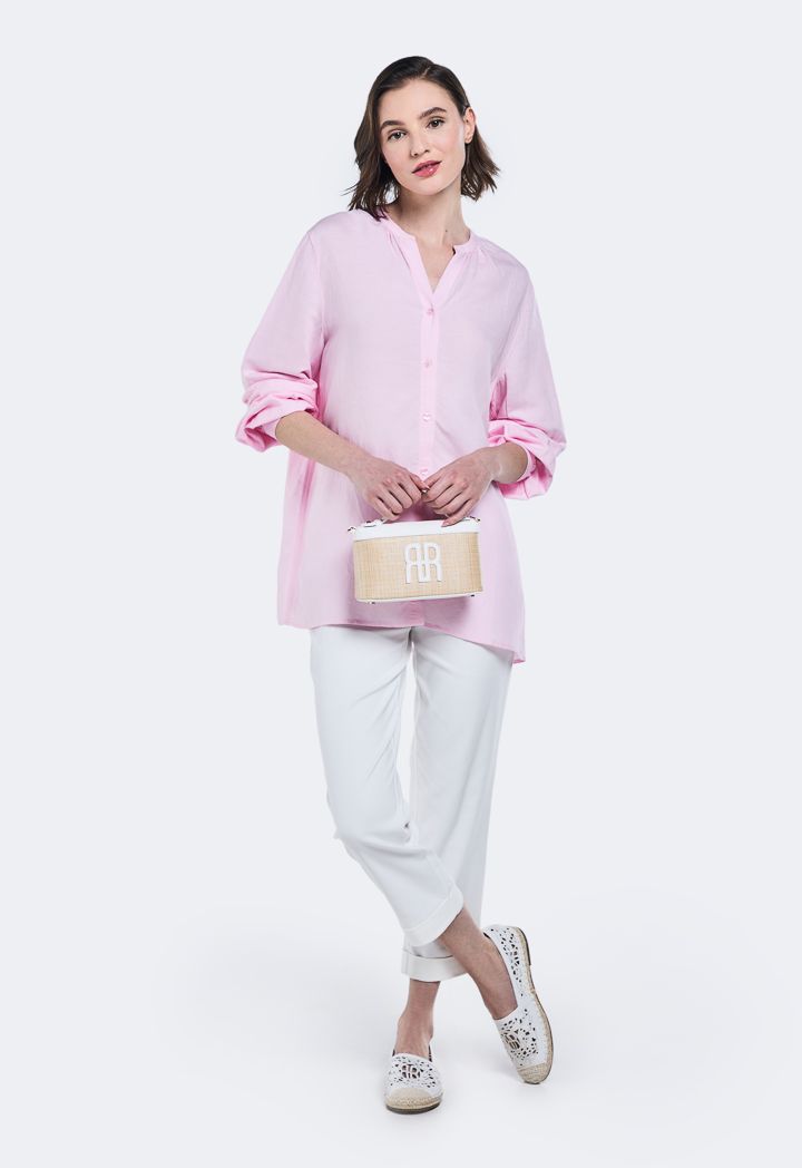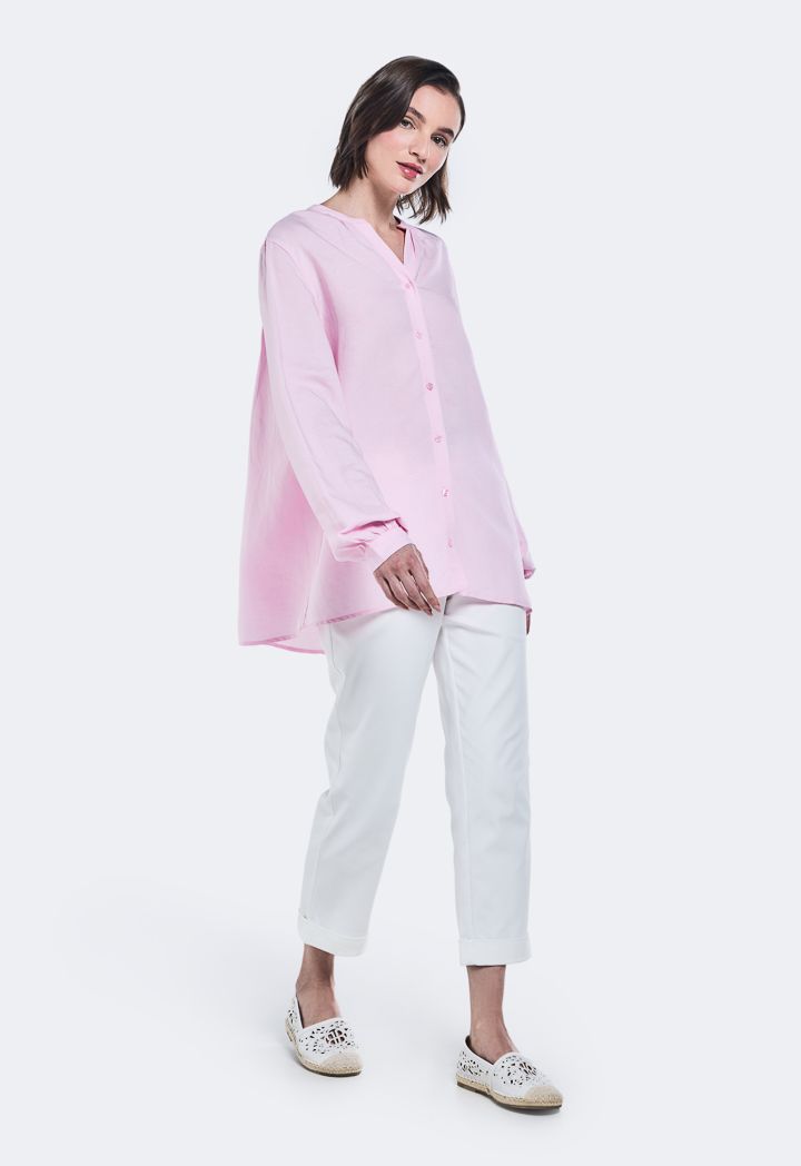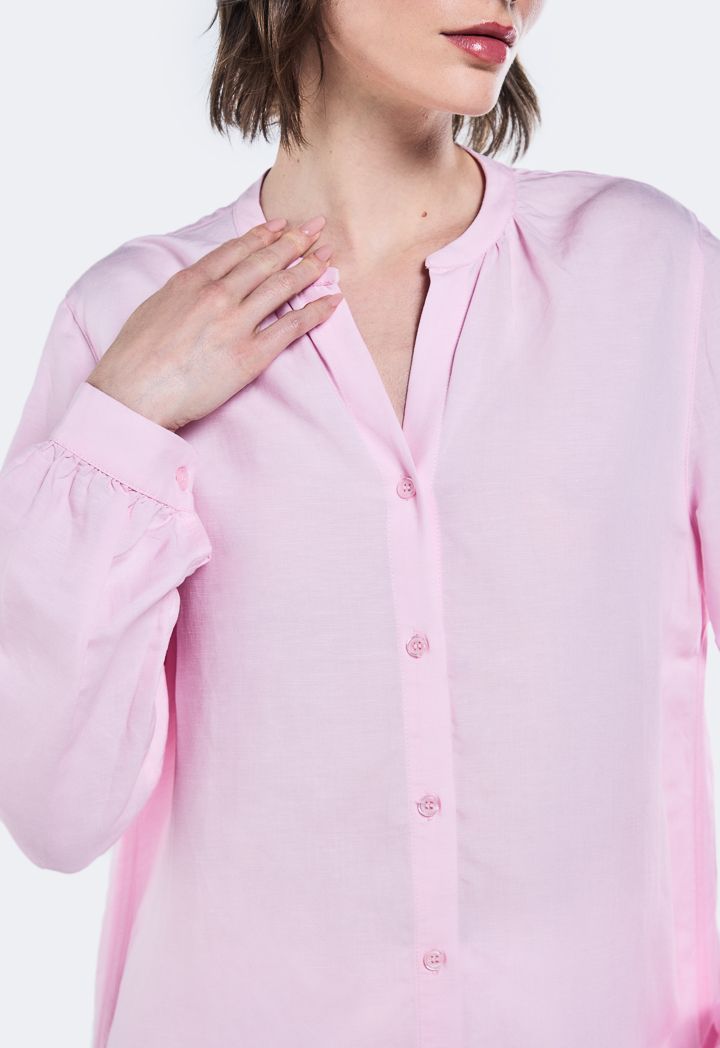 V-Neck Solid Linen Shirt |