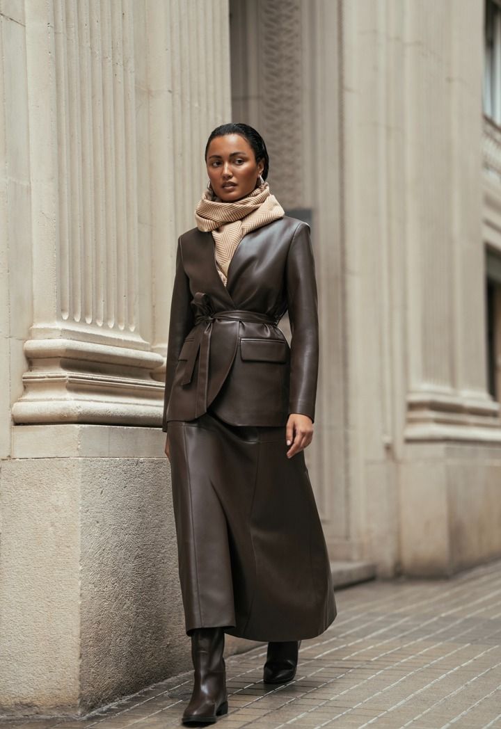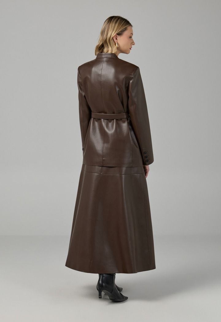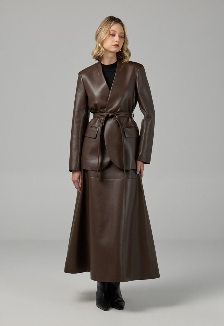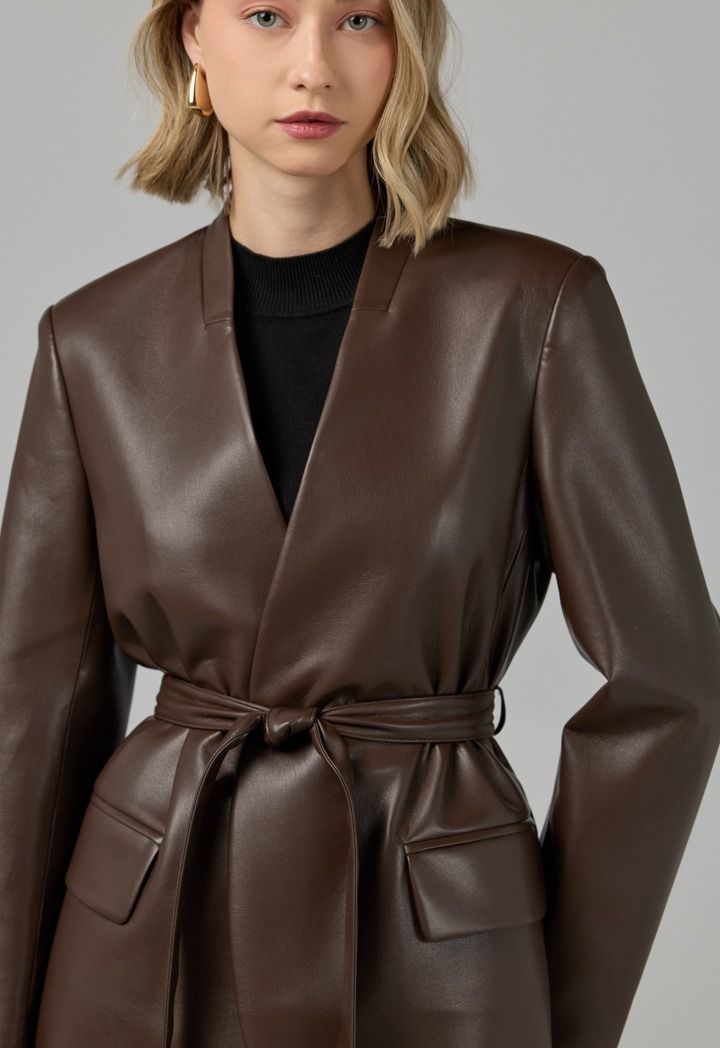Design: Solid, PU Leather, Attached Lining, Belt, Front Flap Pockets