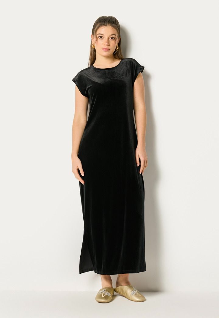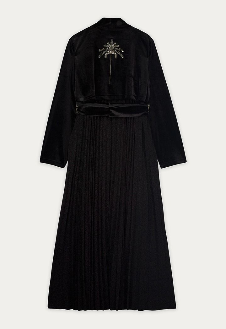 Rich velvet, a shimmer back panel and sequins Embellished belt come together in a kaftan that's perfect for glamorous Ramadan style.
