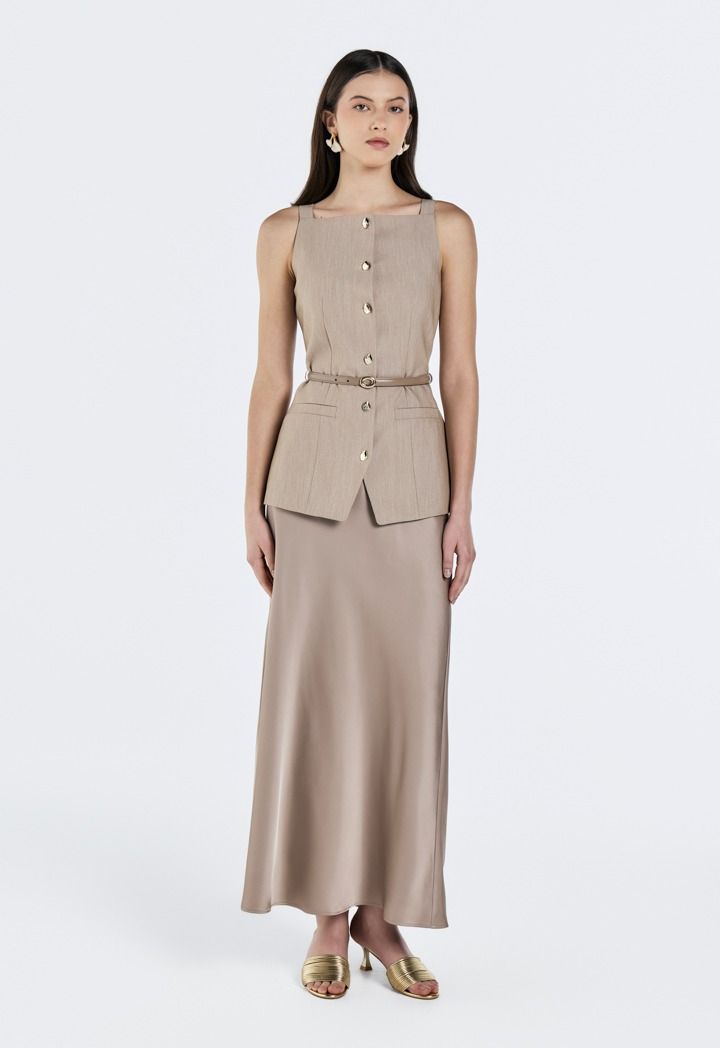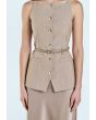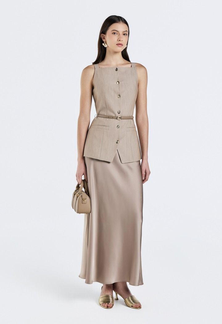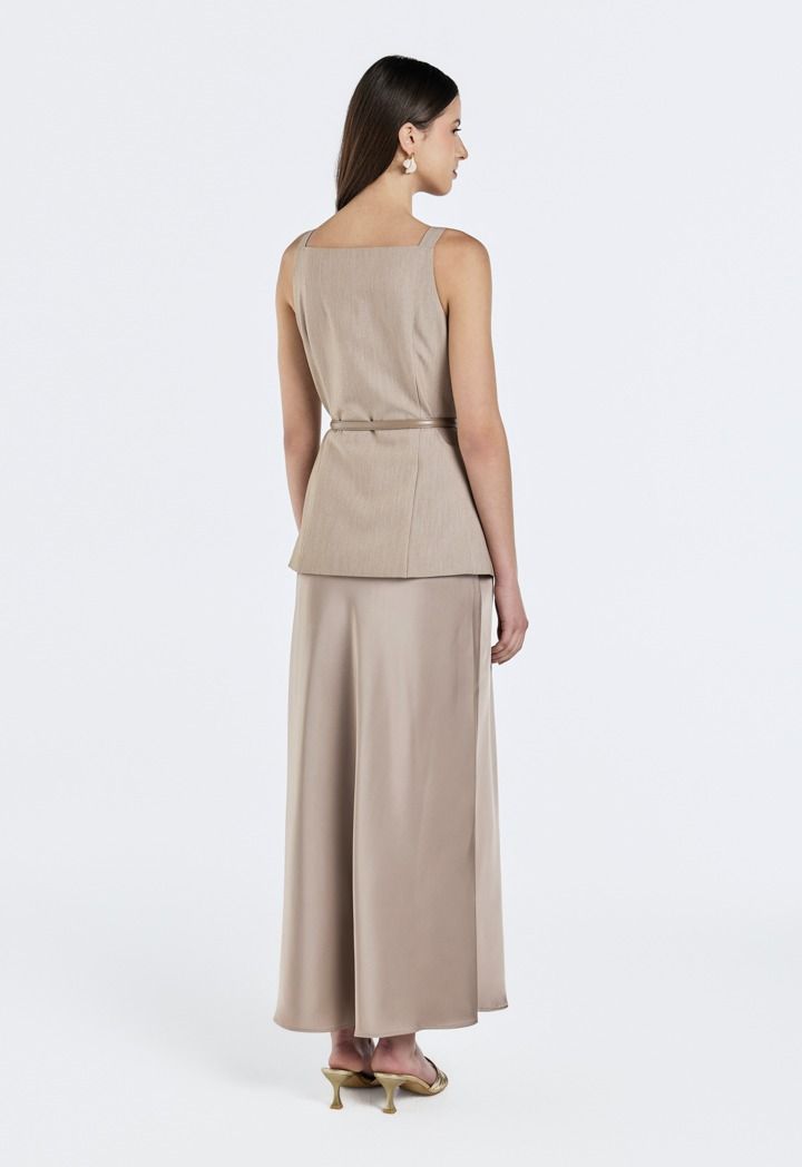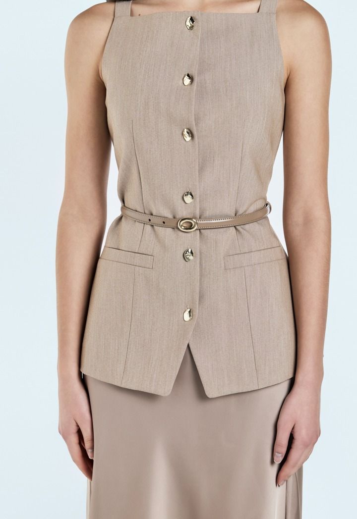 Soft, structured fabric paired with a sleek PU belt for timeless appeal.