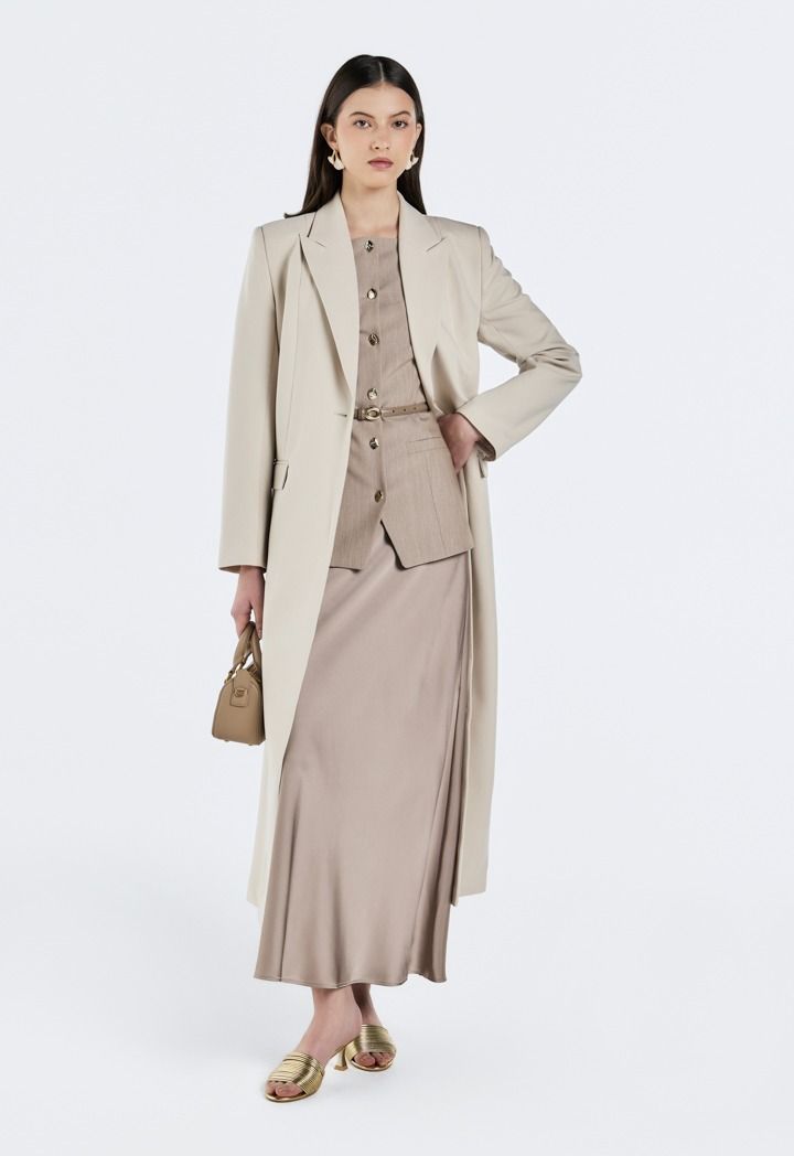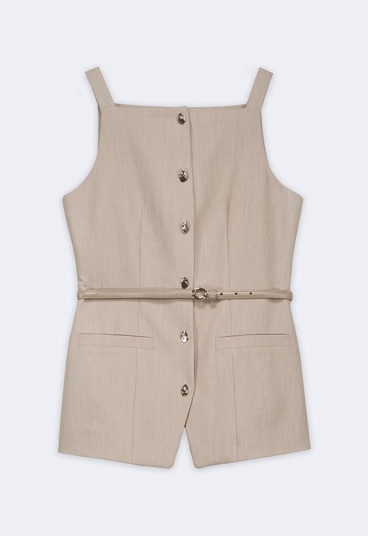 Design: Solid, Attached Lining, PU Leather Belt, Patch Pockets