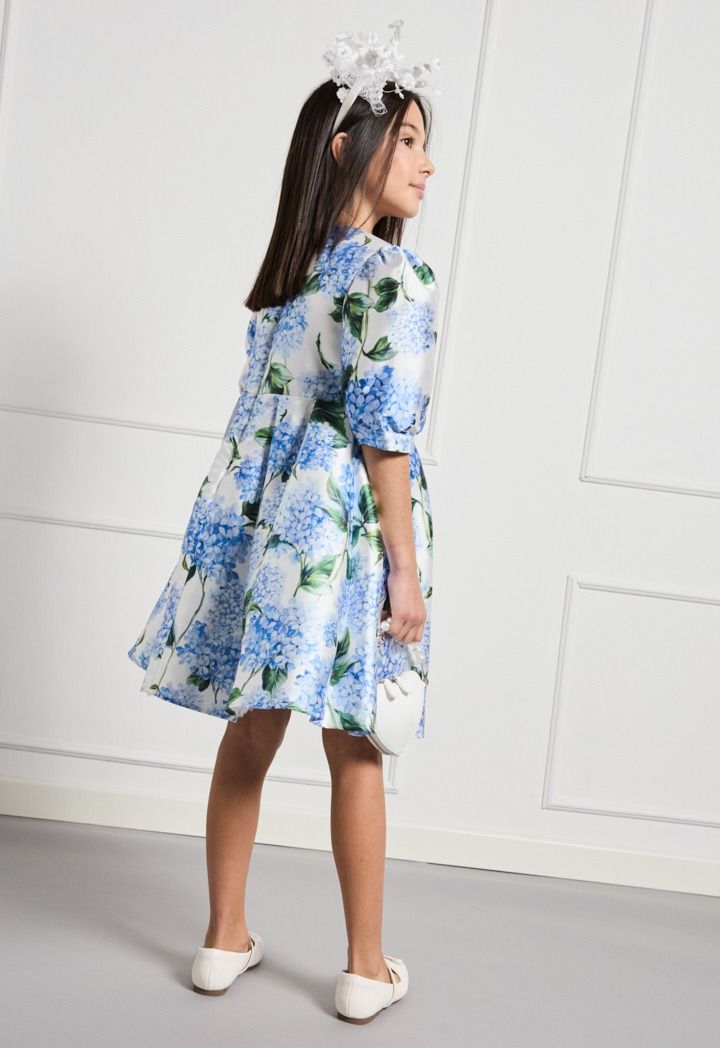 Build your little girls confidence with this colorful dress, featuring a vibrant floral print and short sleeves.