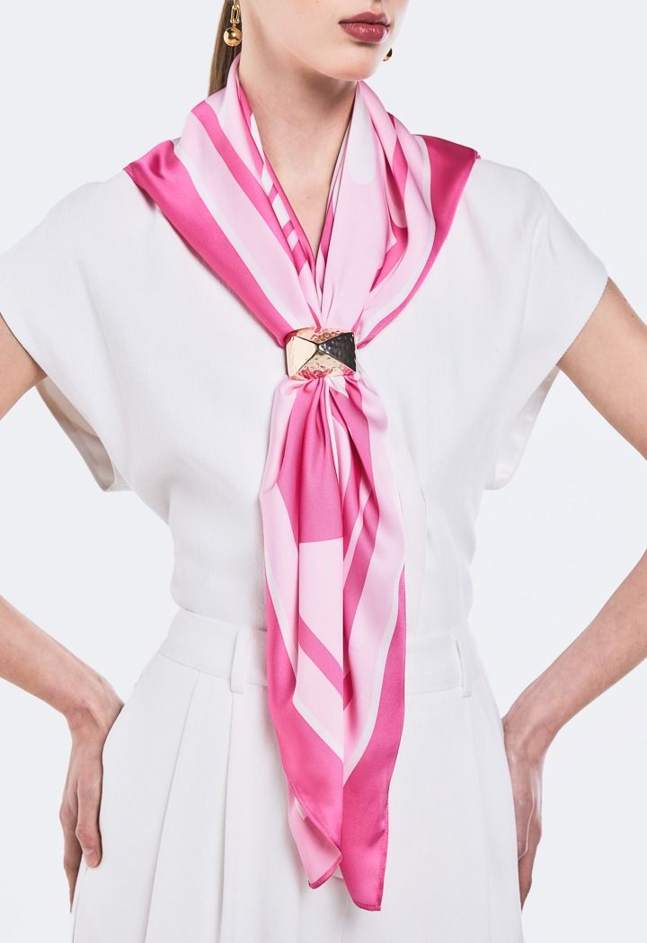 A printed lightweight scarf that can be styled with everything and anything whether it is to decorate your bag, your neck or you can even wear it as a head piece.