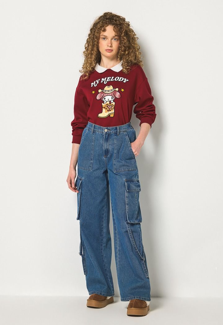 This wide leg cargo Jeans is stunning with a pair of heels and an oversized Hoodie.