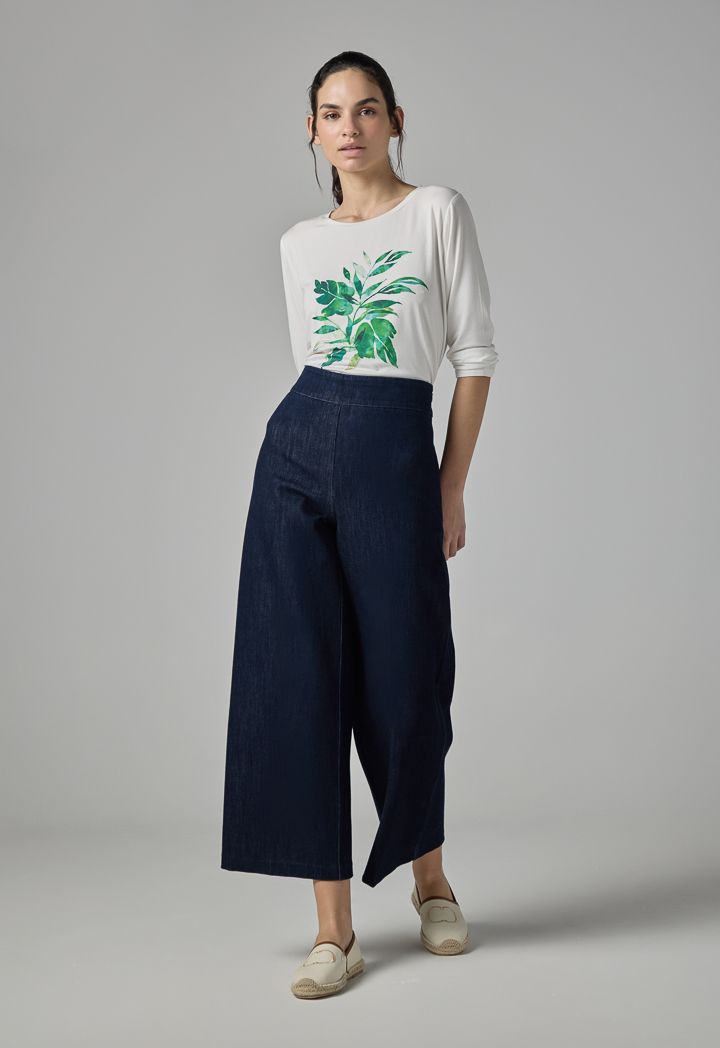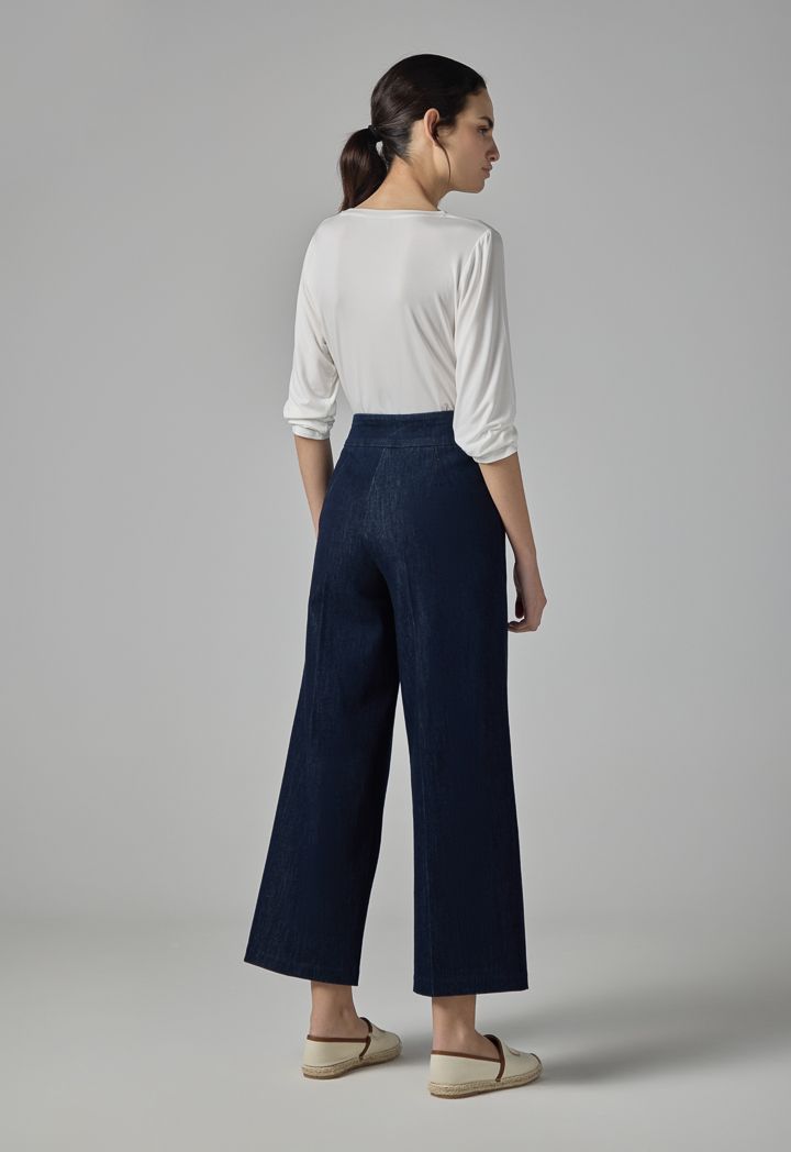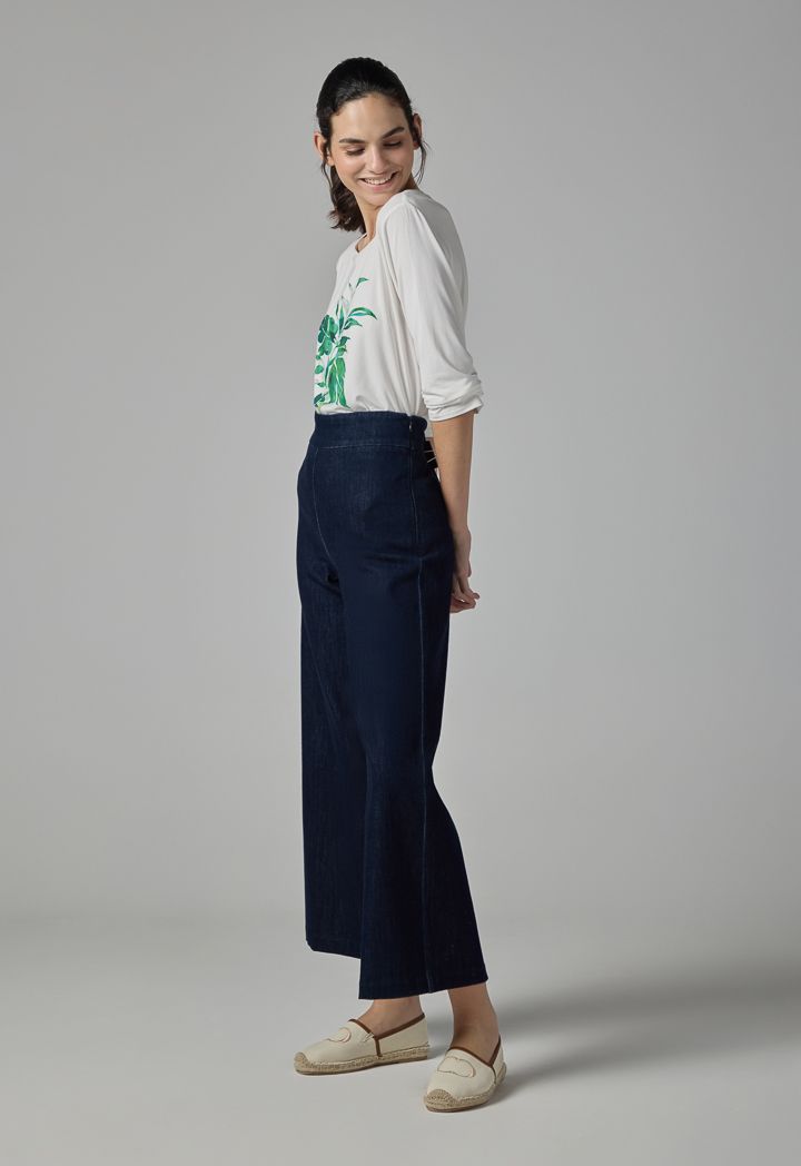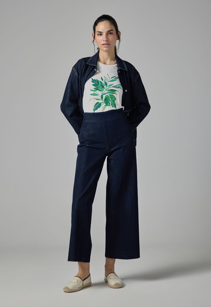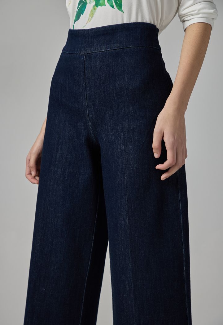 Wide Leg Denim Basic Trousers |