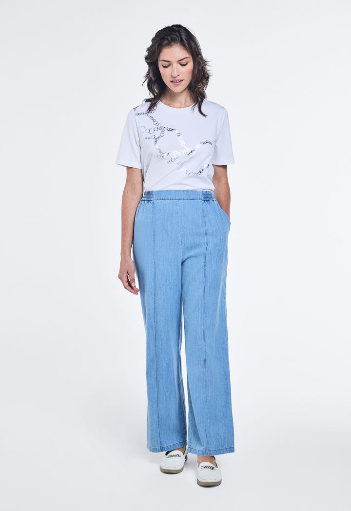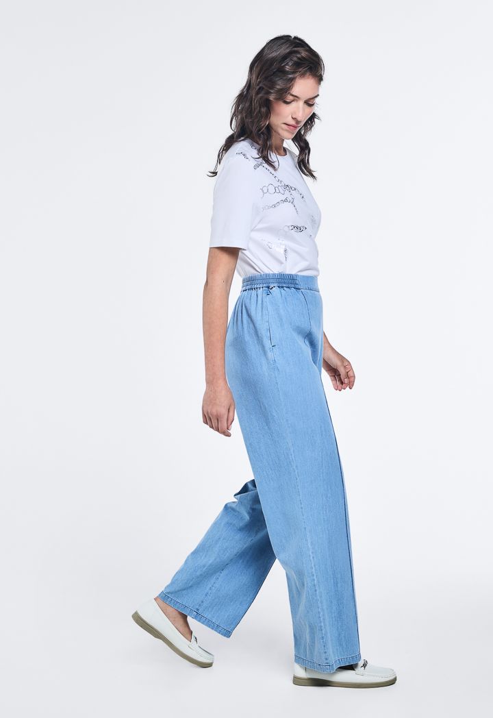 Wide Leg Denim Trousers |