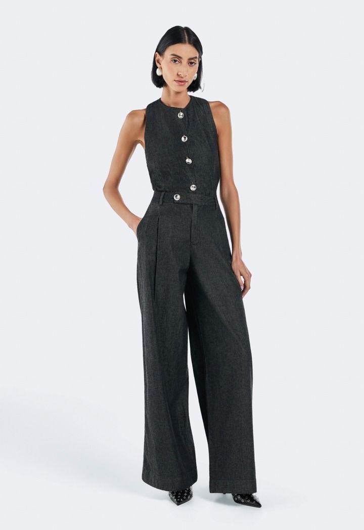 Design: Solid, Side Pockets, Wide Leg, Denim, High Waist