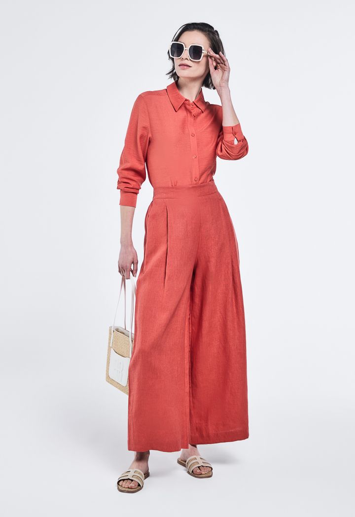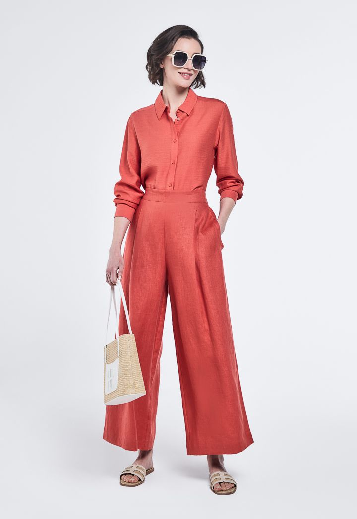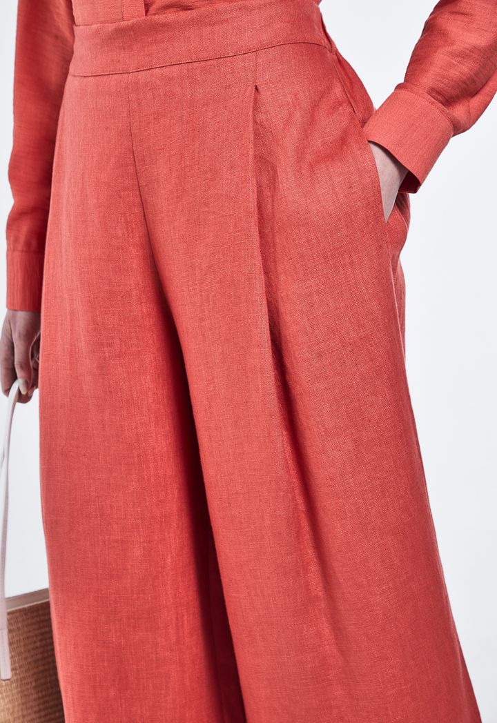 Design: Solid, Wide Leg, High Waist, Side Pockets, Pleated