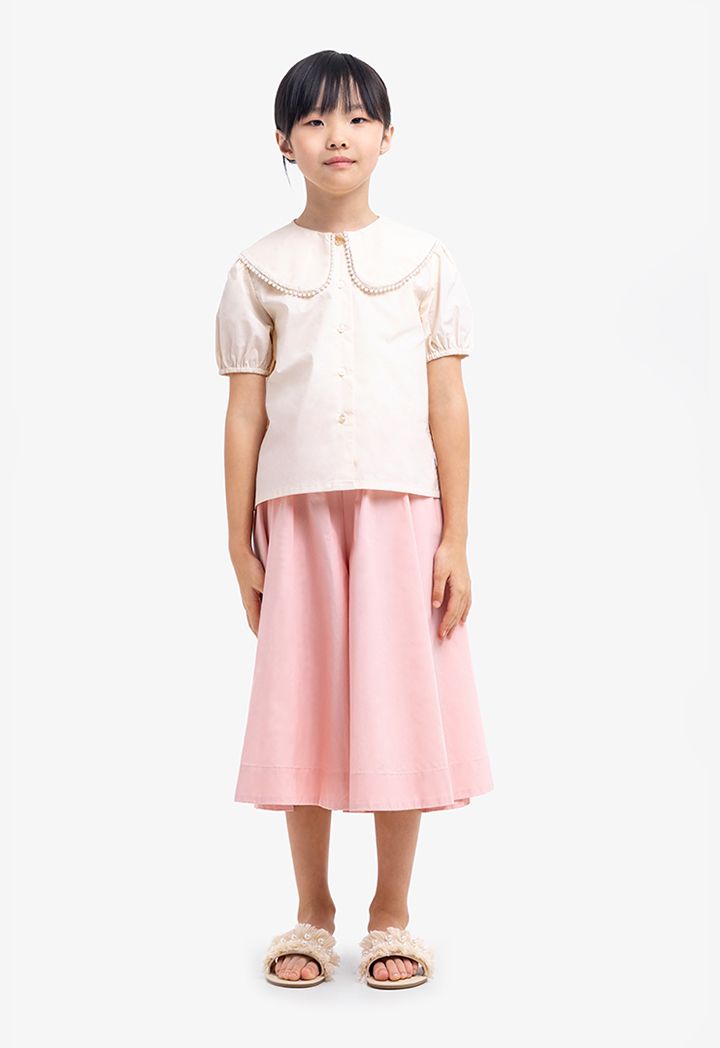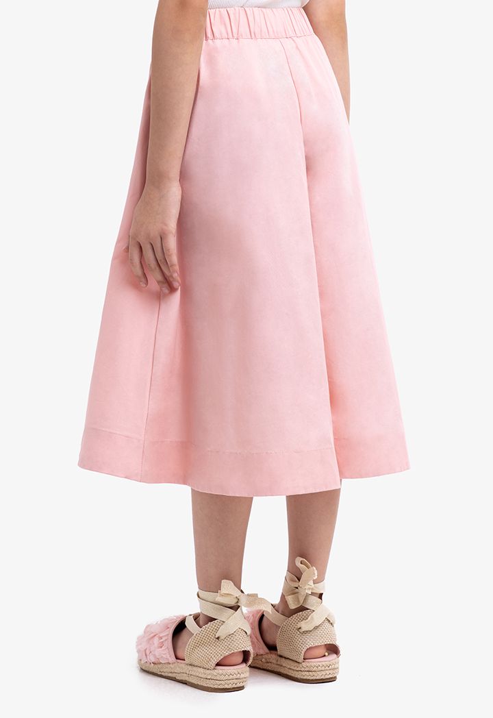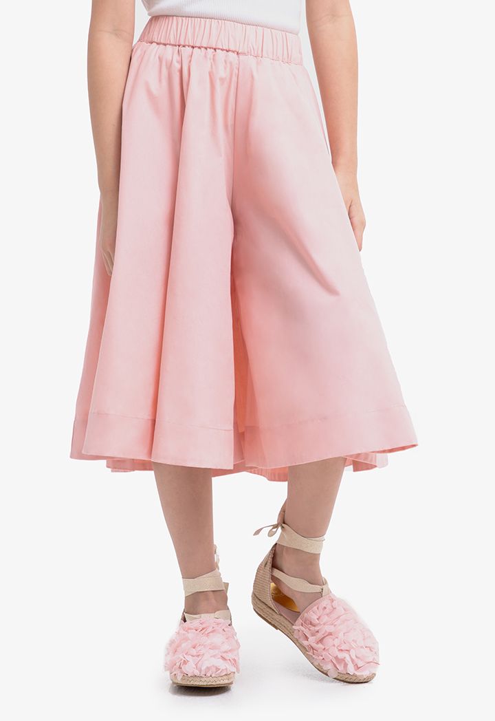 Refreshing charm comes to your girl's casual closet with this Below Knee Trouser. It features Wide leg, Side Pockets and Elastic Waistband.
