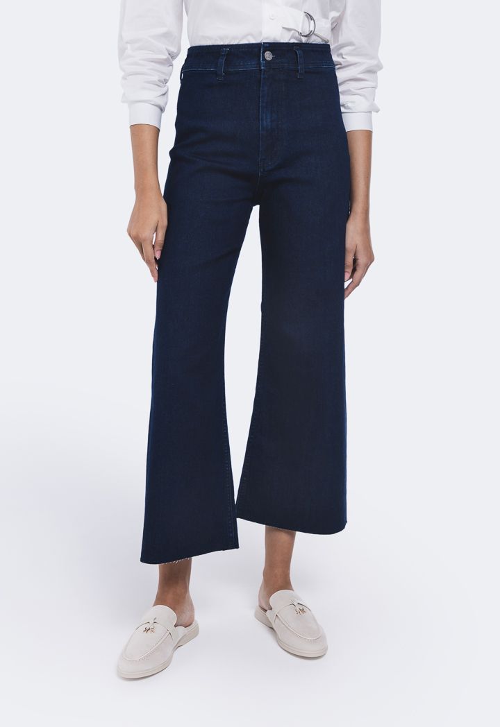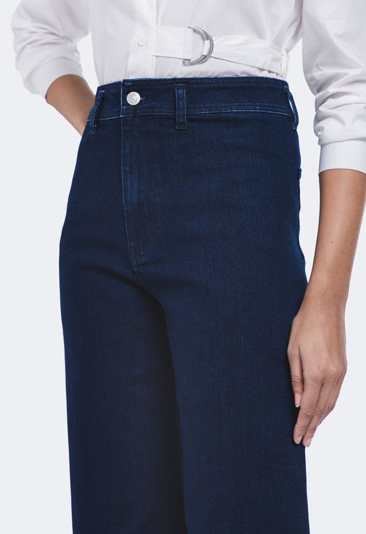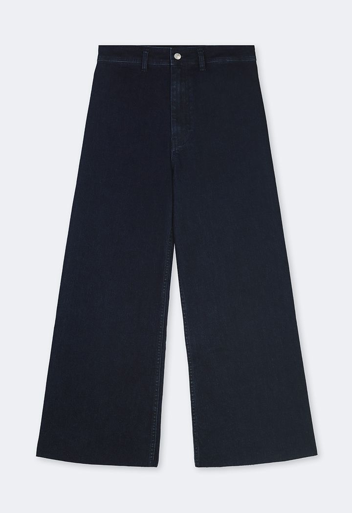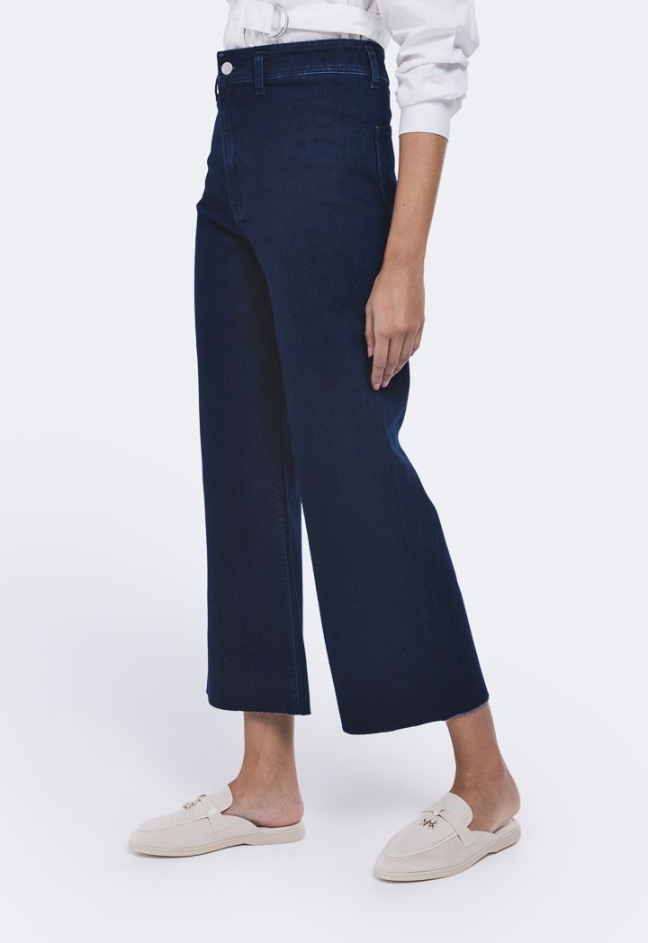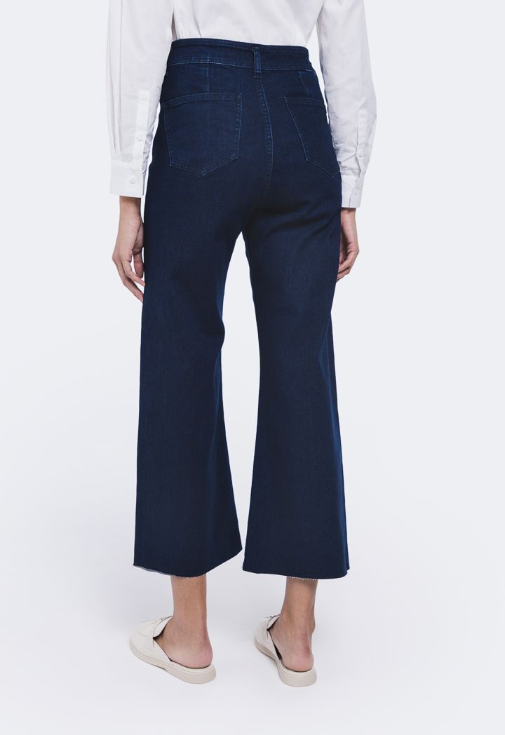 Design: Solid, Denim, Back Pockets, Wide Legs, High Waist