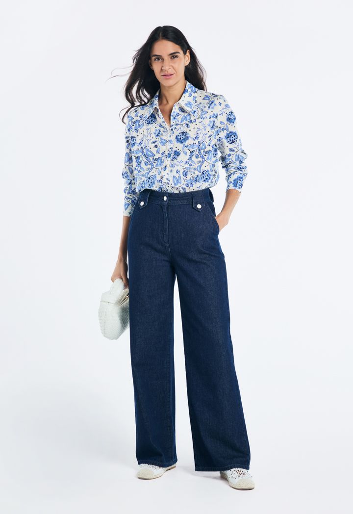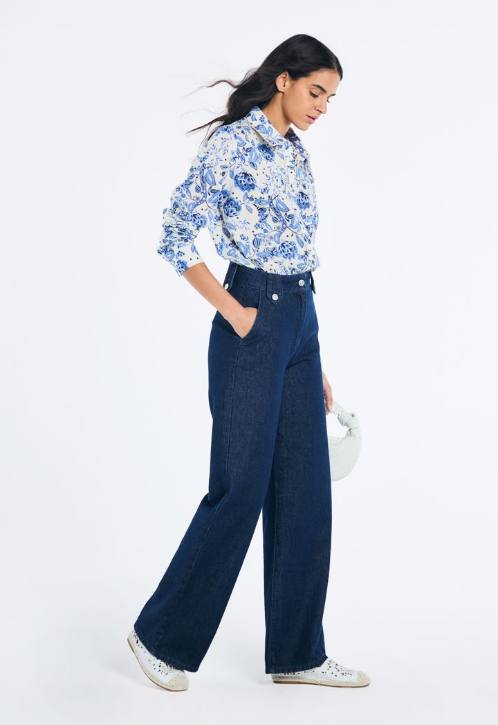 Design: Solid, Wide Leg, High Waist, Side Pockets, denim