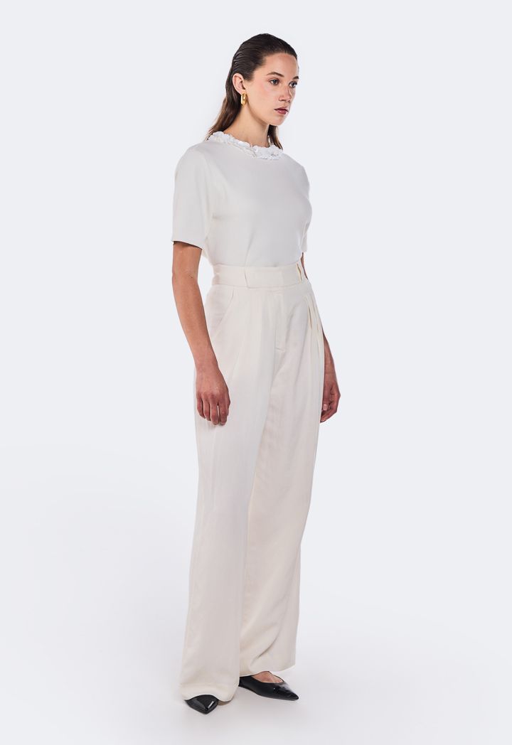 Design: Solid, Wide Leg, Side Pockets, Pleated Waist, High Waist