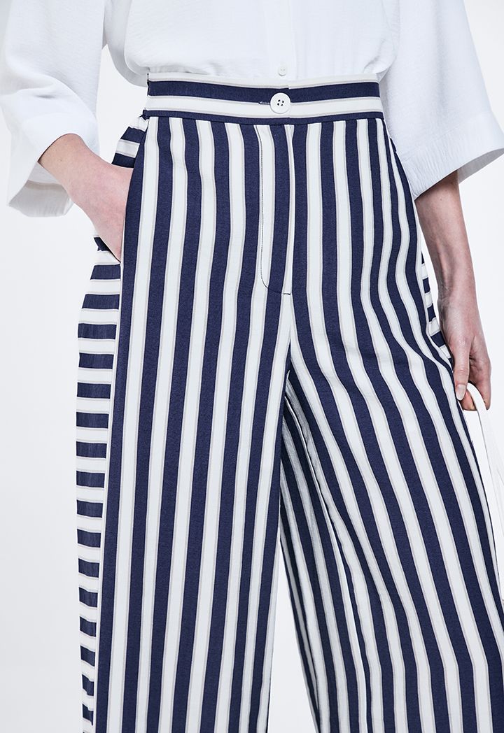 Design: Striped, Wide Leg, High Waist, Side Pockets