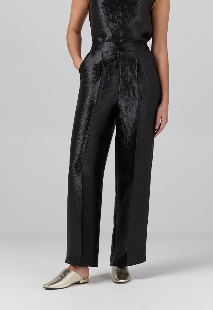 Design: Solid, Textured, Side Pockets, Wide Leg