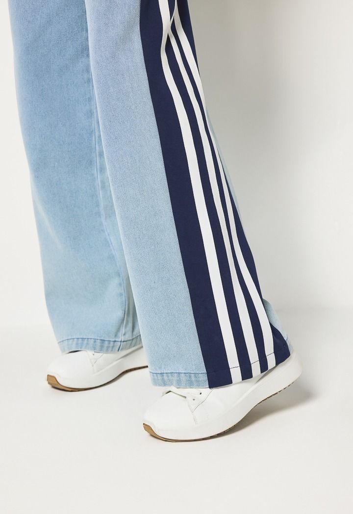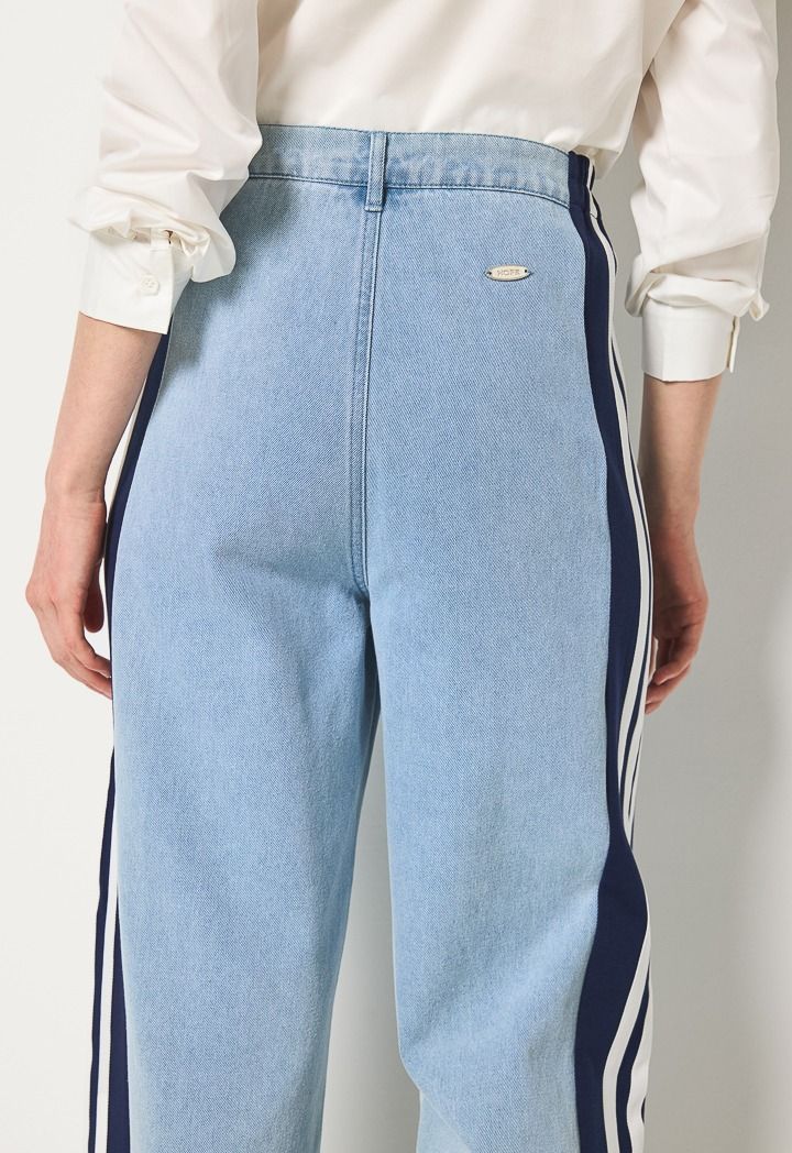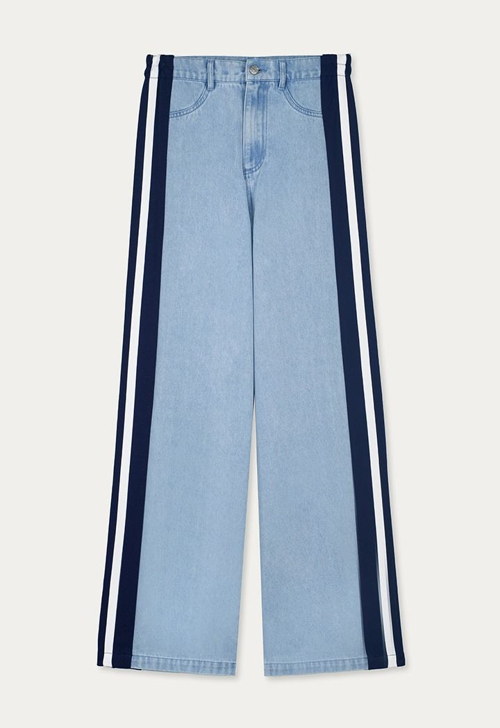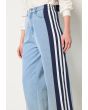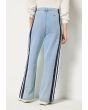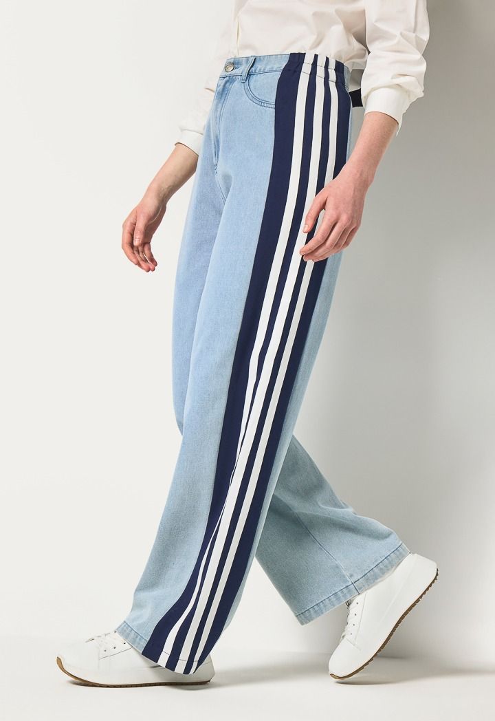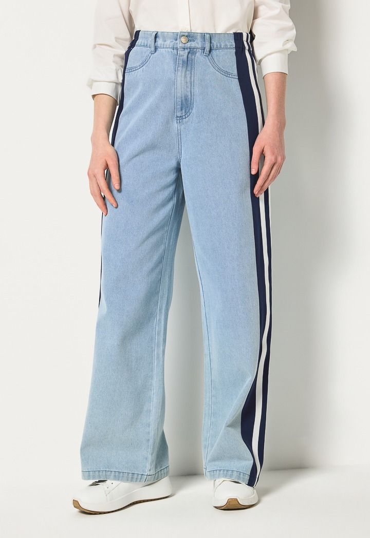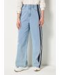 A unique pair of jeans with striped side details, bringing a trendy touch and an effortlessly stylish look.