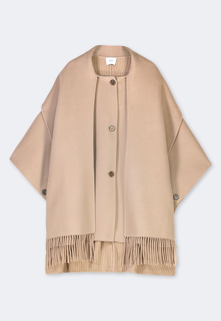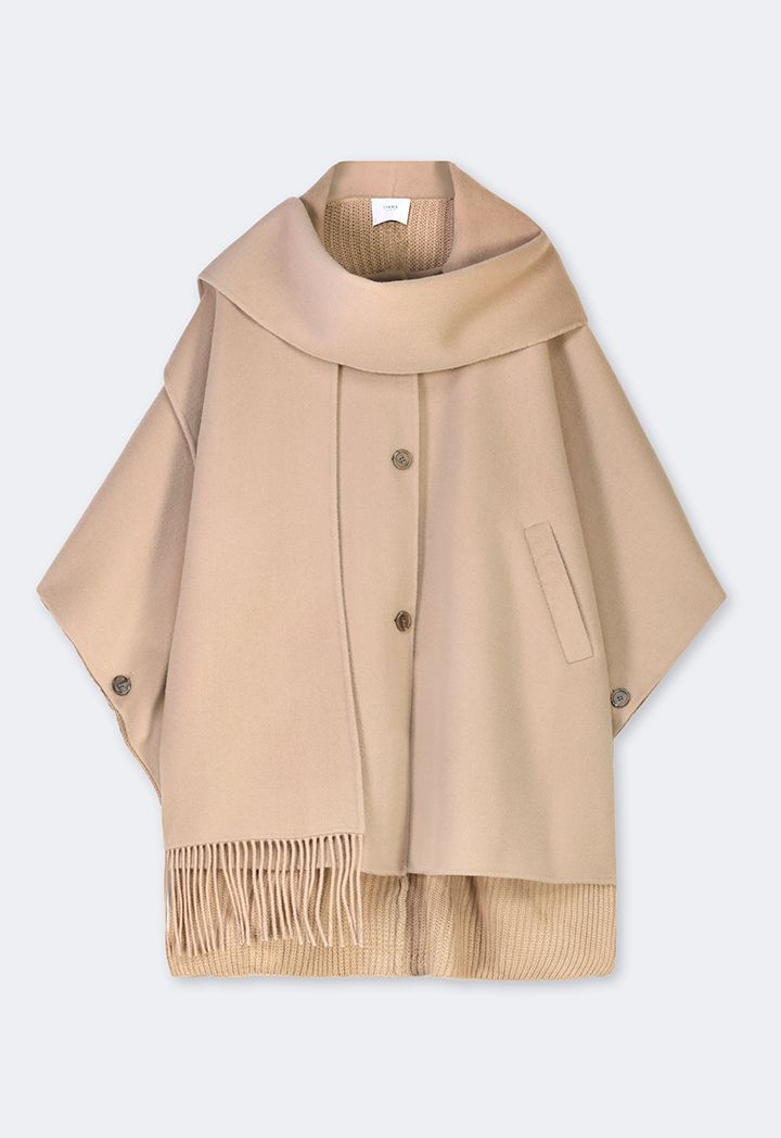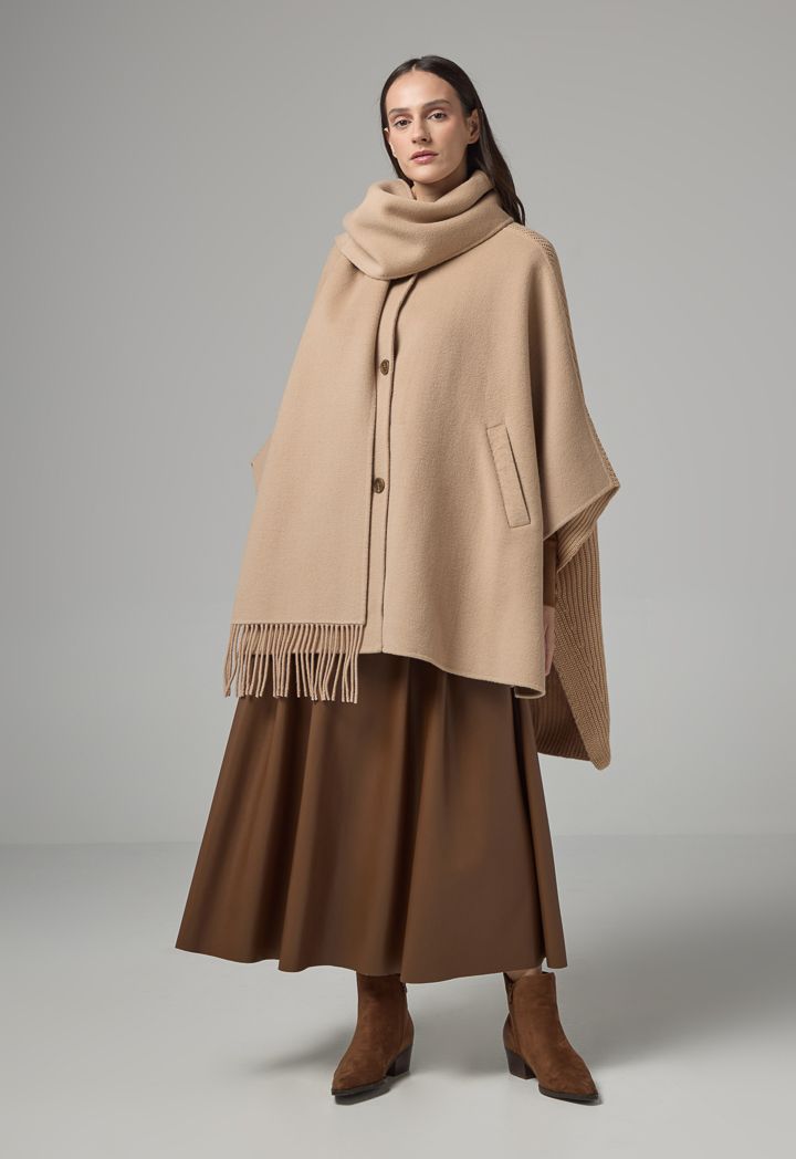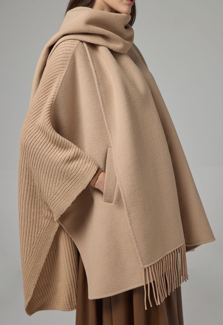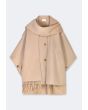 Winter Wool Poncho With Undetachable Scarf |