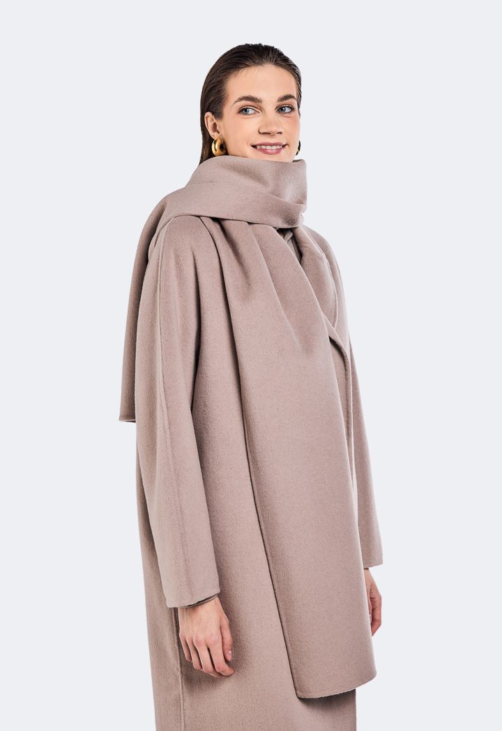Design: Solid, Side Pockets, Wool, Double Breasted, Detachable Scarf