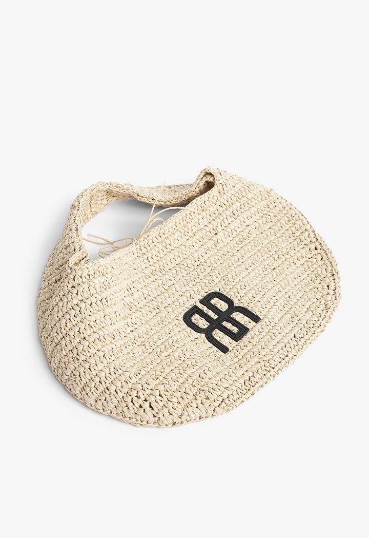 A woven straw beach bag featuring wide top handle, it has a spacious interior which is perfect for long days at the beach.
