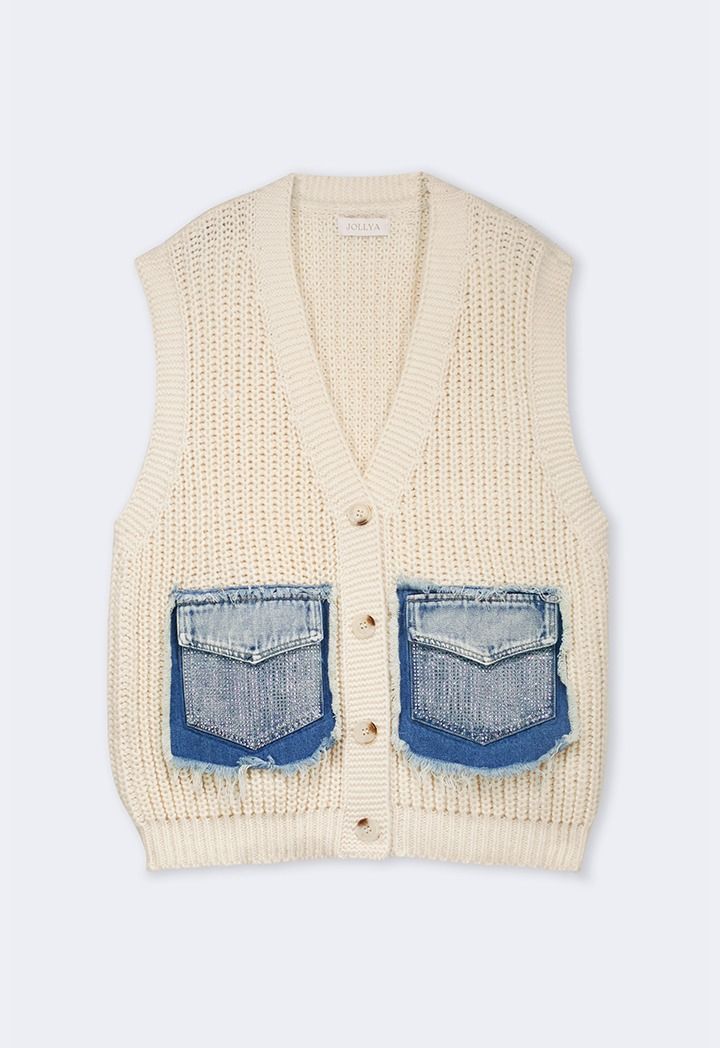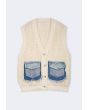 Woven Vest With Denim Pockets |