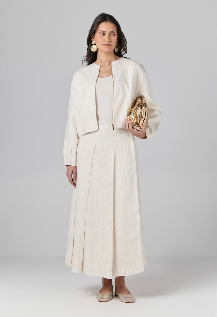 Design: Solid, Lurex, Wrap, Front Slit, Attached Lining, Pleated