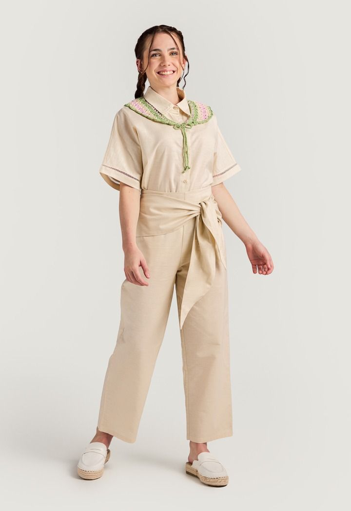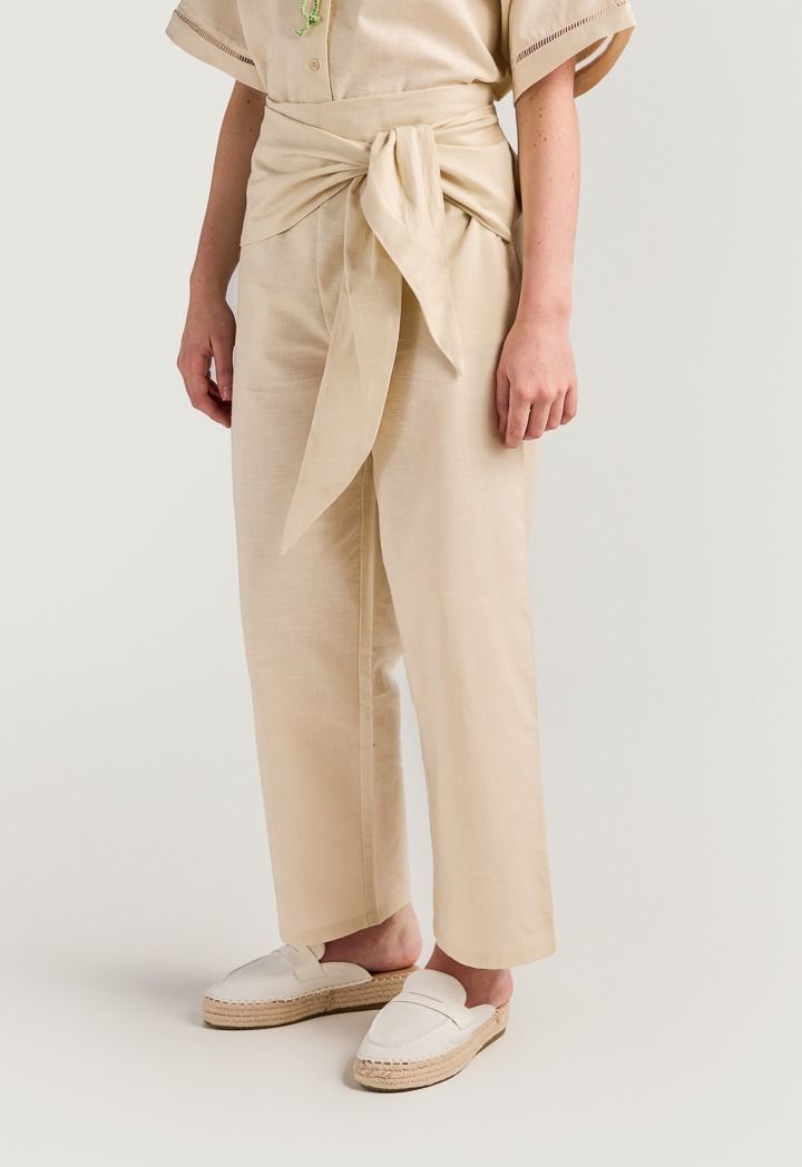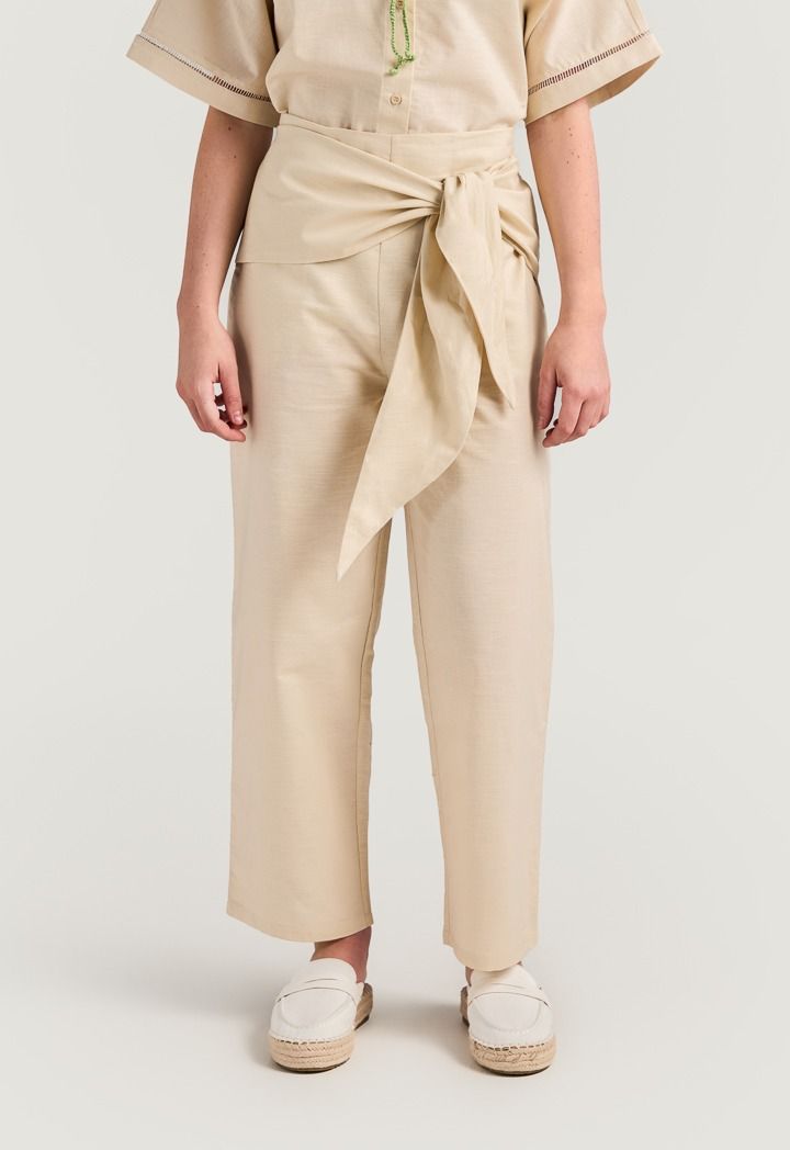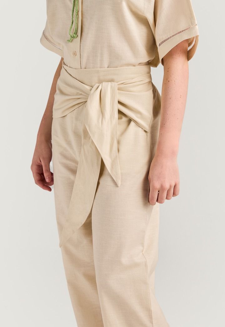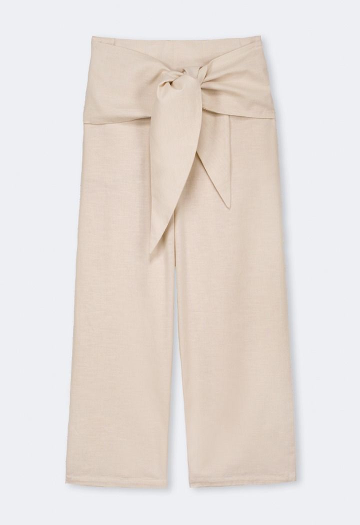 Style your basic tops with this unique design of a pair of trousers, featuring a wrap tie waist.