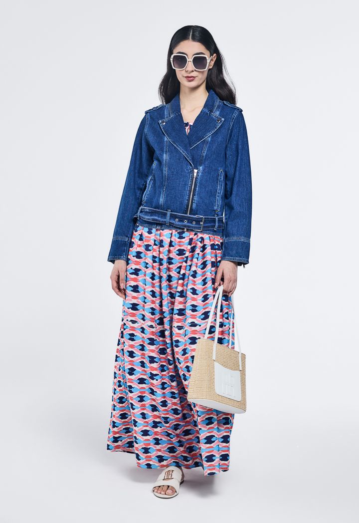 Design: Solid, Side Pockets, Belted Waist, Denim