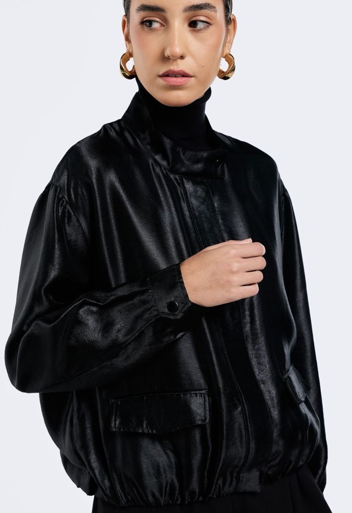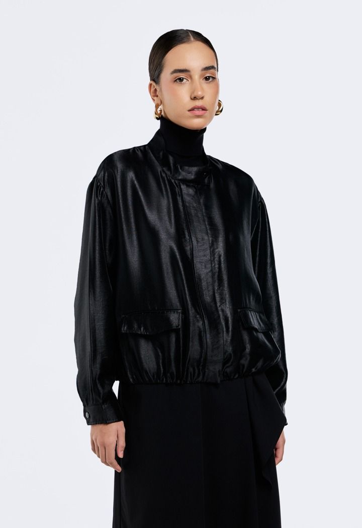 Design: Solid, Flap Pockets, Elasticated Hem, Regular Fit, Shiny