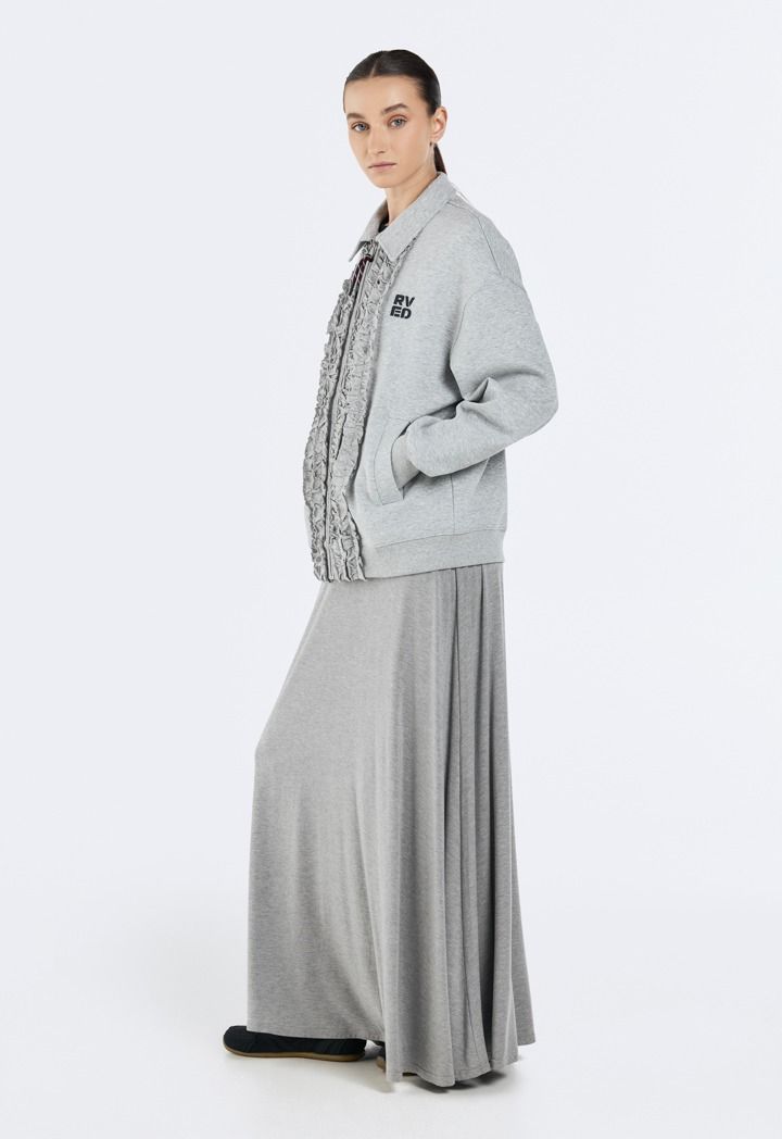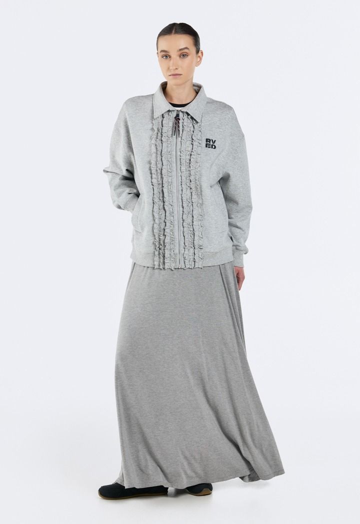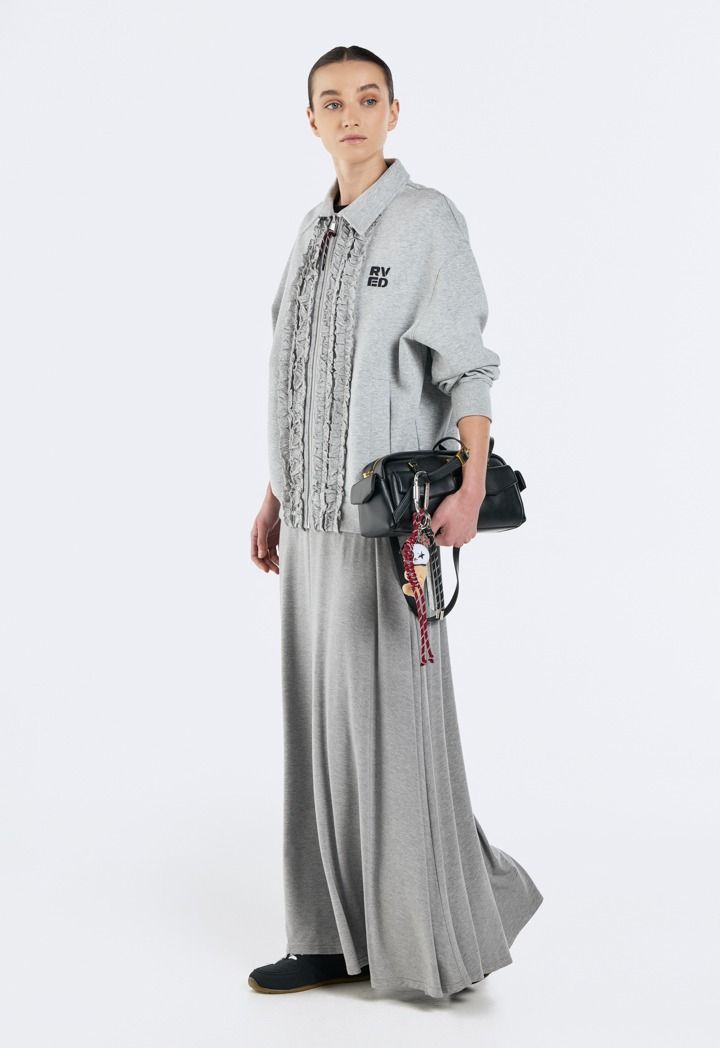 Design: Solid, Ruffle Details, Elastic Hem, Drop Shoulders, side pockets