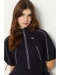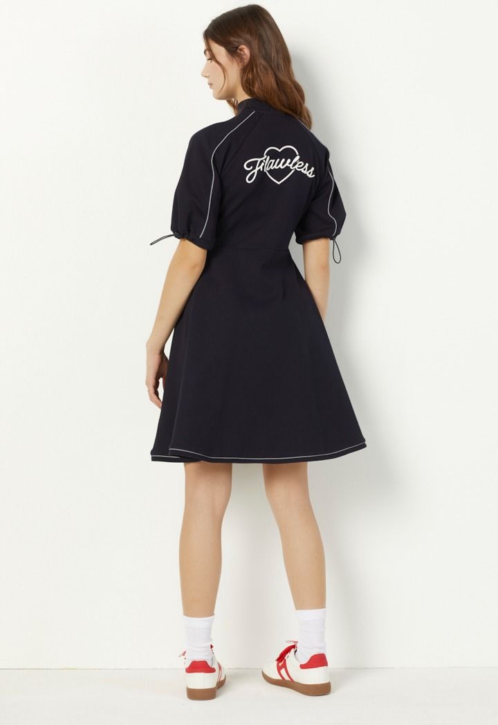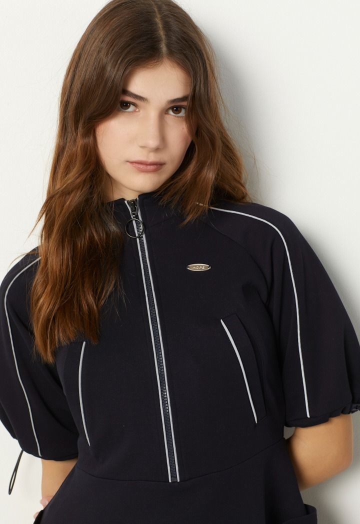 Sporty dress with a front zipper and short sleeves, offering a modern and practical look for any activity.